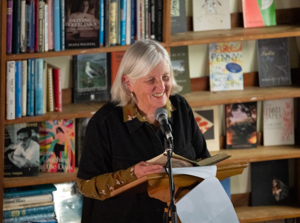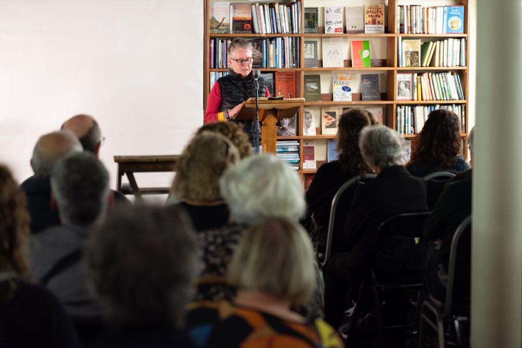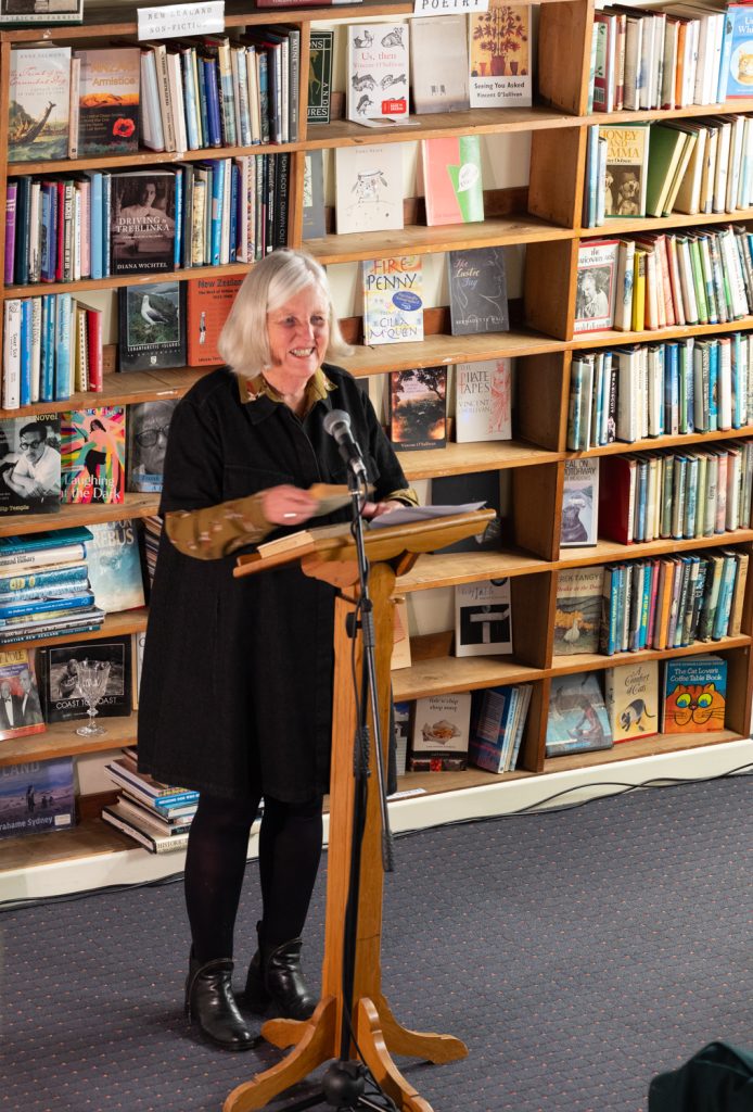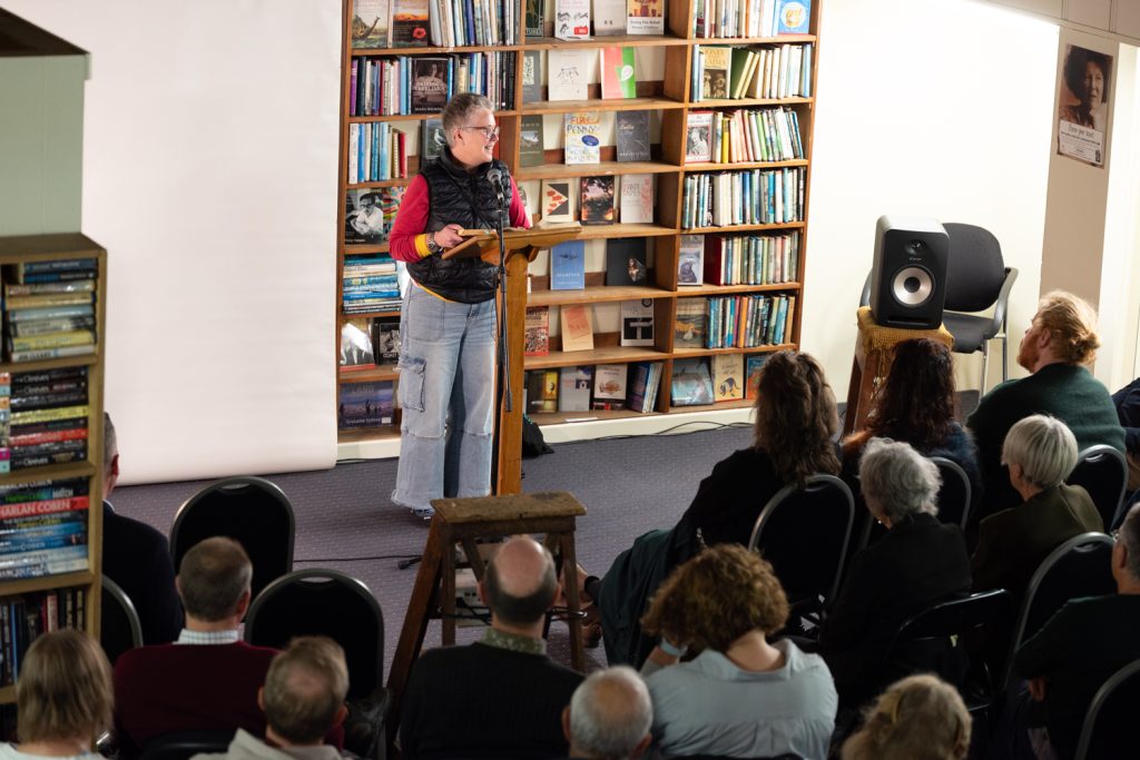 Author Laurence Fearnley reading at the 155th celebration at the library.