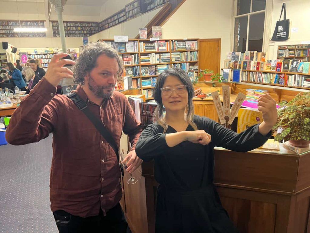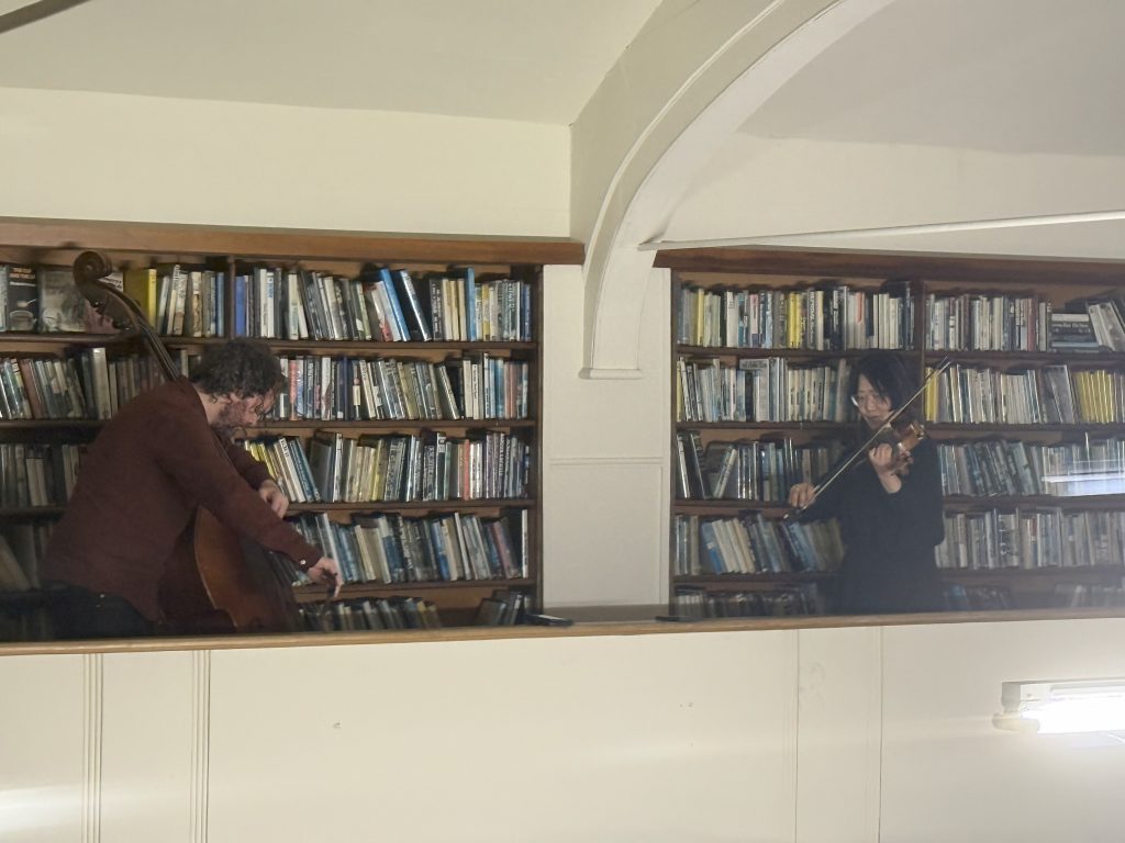 Musician’s Simon Eastwood and Motoko Kikkawa playing at the National Poetry Day 2025.
